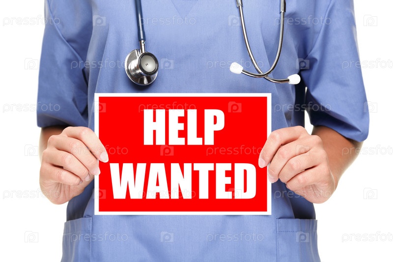Врач / медсестра держит знак "Нужна помощь"