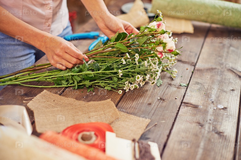 Флорист делает букет