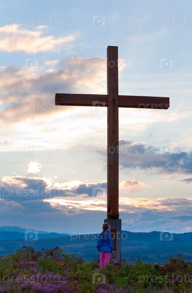 Маленькая девочка возле деревянного креста