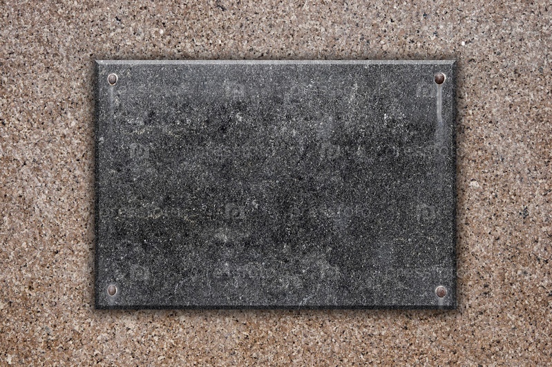 Черная мраморная табличка на гранитной стене