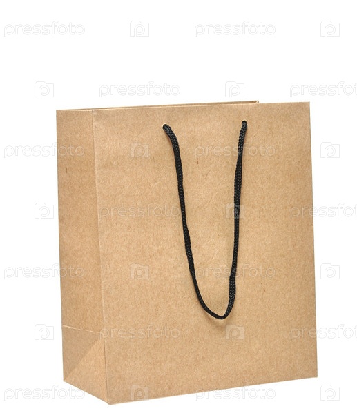 Бумажный пакет из переработанной бумаги изолирован на белом фоне