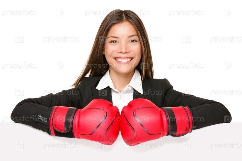 Бизнес-леди в боксерских перчатках