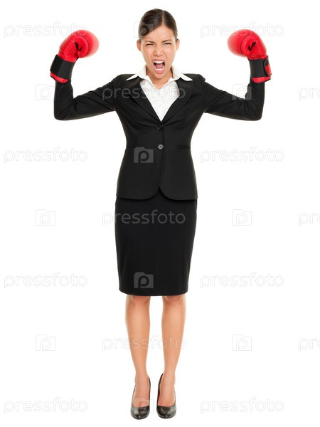Бизнес-леди в боксерских перчатках