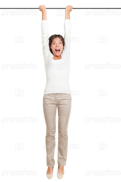 Женщина висит на перекладине