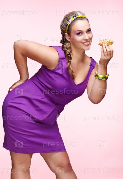 Полная женщина с пирожным