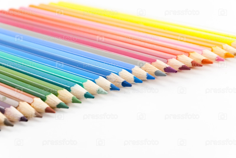 Набор цветных карандашей на белом фоне