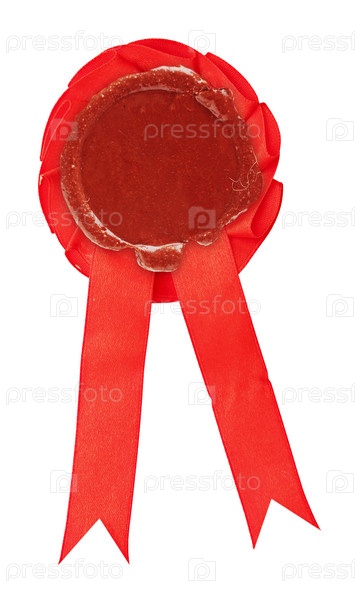 Восковая печать с красной лентой на белом фоне