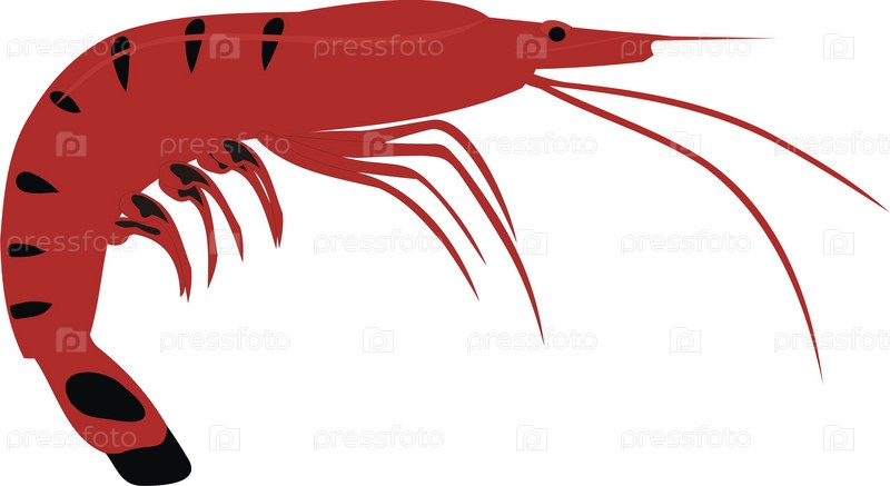 Красная креветка на белом фоне, иллюстрация
