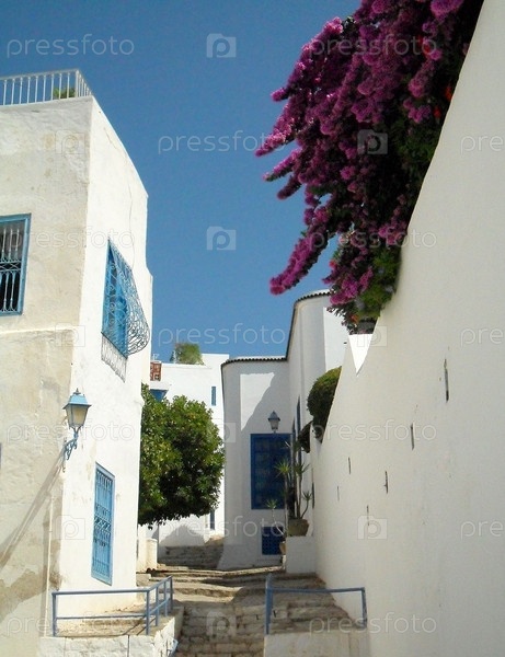 Улица города Сиди-бу-Саид в Тунисе