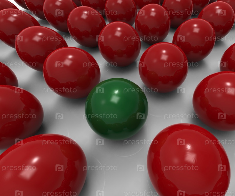Один зеленый шар среди черных