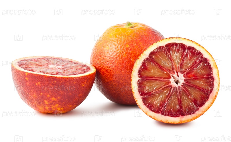 Красные апельсины на белом фоне