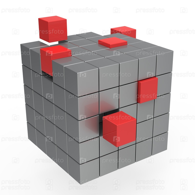 Серый куб с красными деталями