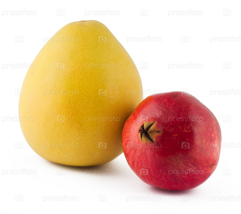 Гранат и помело на белом фоне