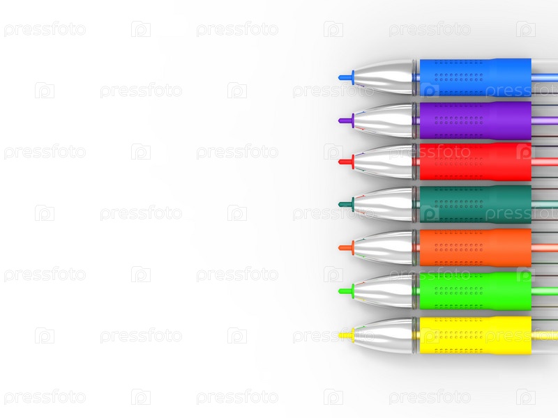 Ручки разных цветов на белом фоне