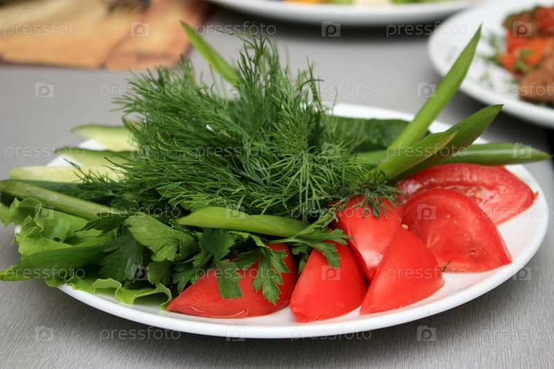 Свежие нарезанные овощи на тарелке