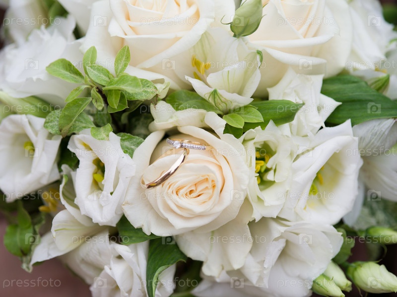Обручальные кольца на букете невесты
