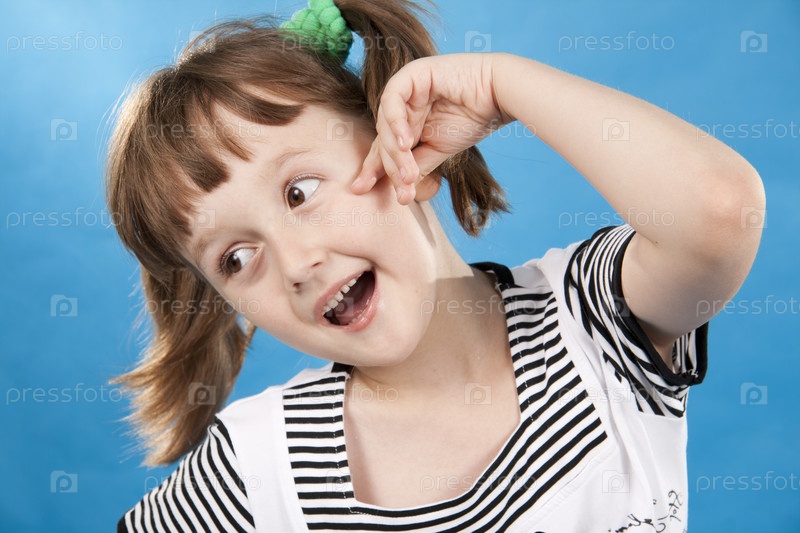 Маленькая забавная девочка на синем фоне