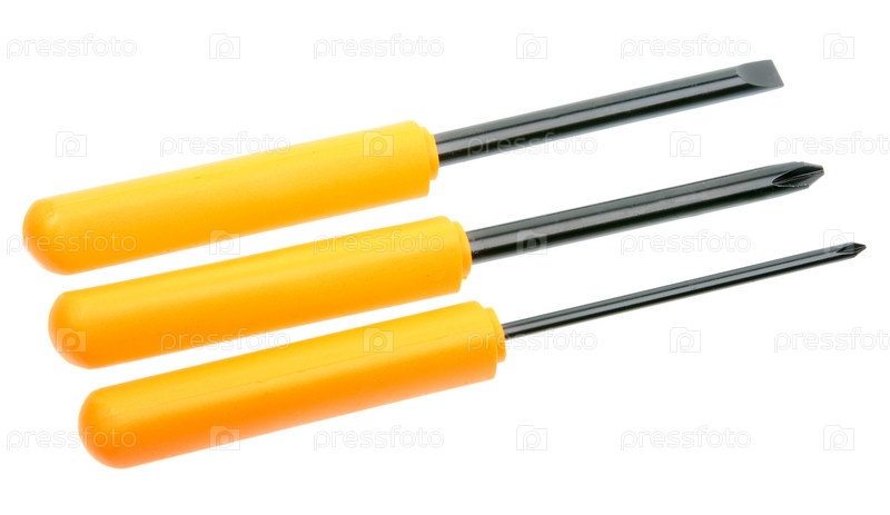Набор из трех оранжевых отверток на белом фоне