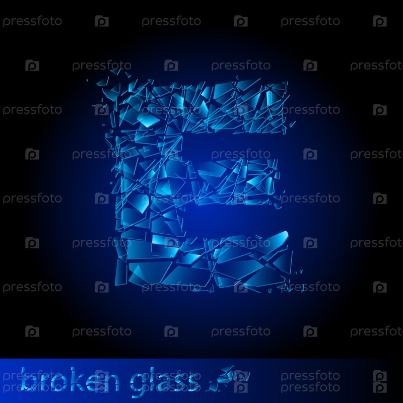 Буква Е. Алфавит из осколков стекла на темно-синем фоне
