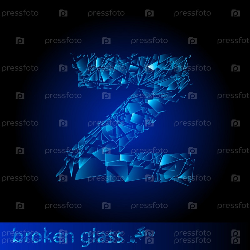 Буква Z. Алфавит из осколков стекла на тёмно-синем фоне