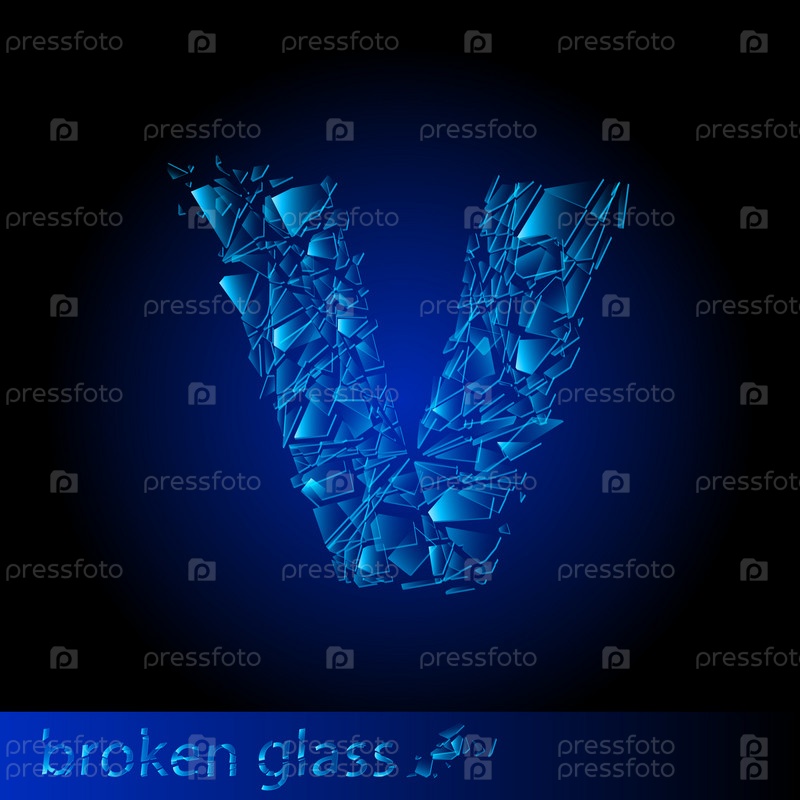 Буква V. Алфавит из осколков стекла на тёмно-синем фоне