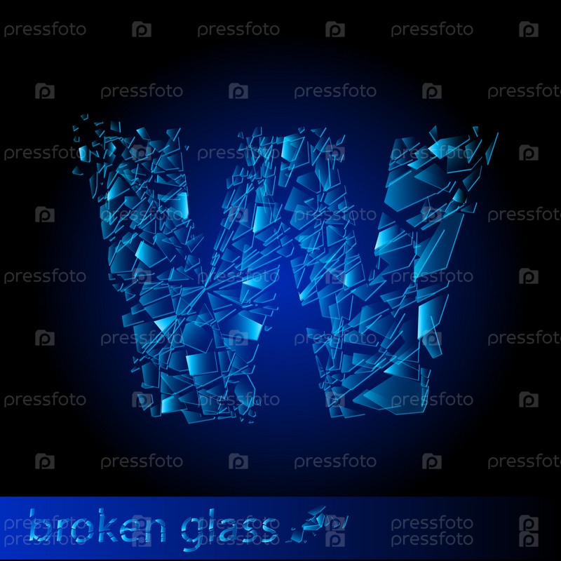 Буква W. Алфавит из осколков стекла на тёмно-синем фоне