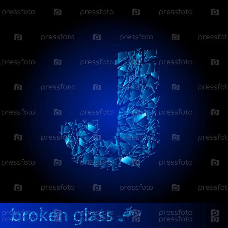 Буква J. Алфавит из осколков стекла на темно-синем фоне