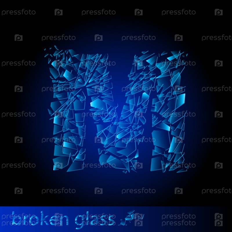 Буква M. Алфавит из осколков стекла на темно-синем фоне