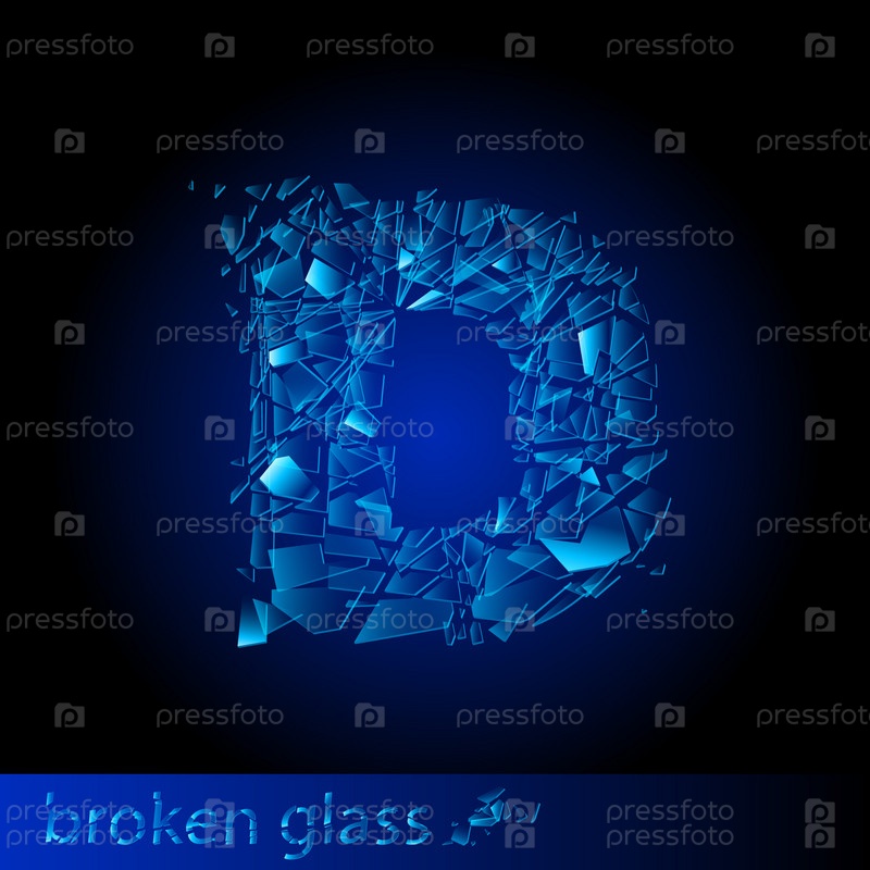 Буква D. Алфавит из осколков стекла на тёмно-синем фоне