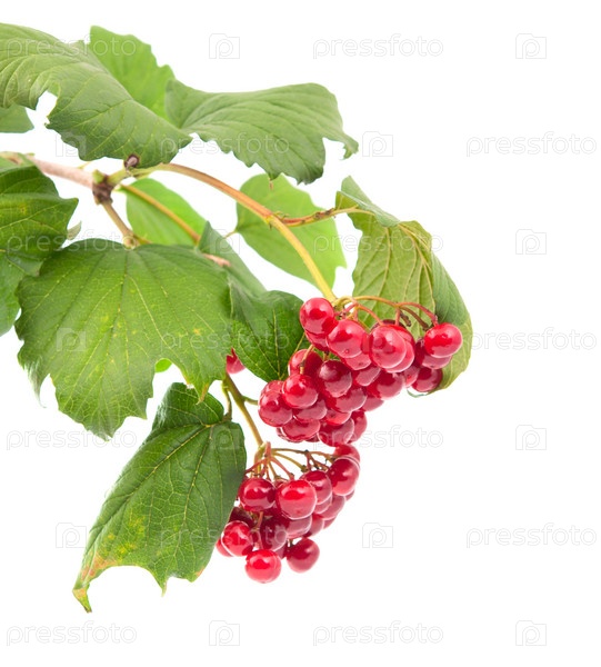 Веточка с ягодами калины на белом фоне