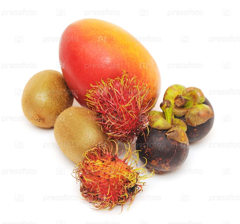 Свежие тропические фрукты на белом фоне