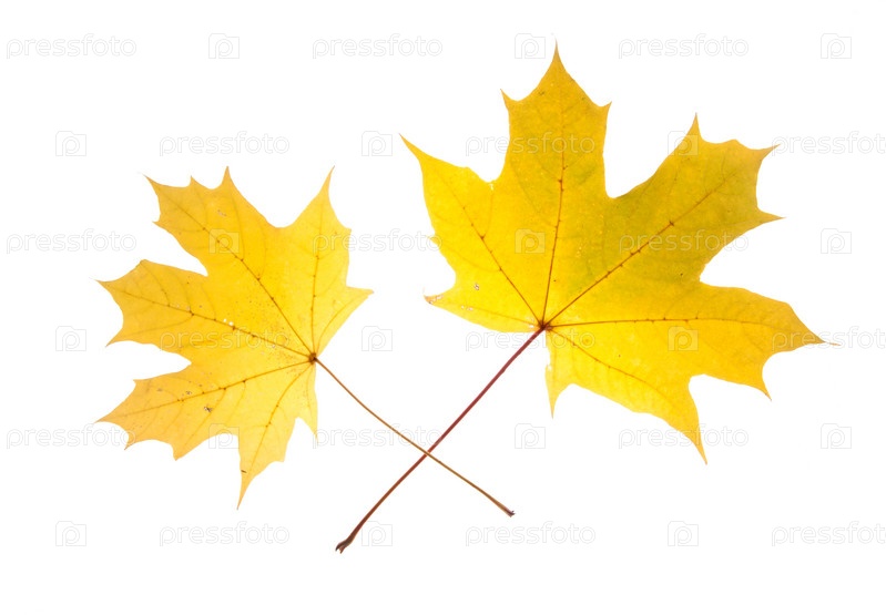 Кленовые осенние листья на белом фоне