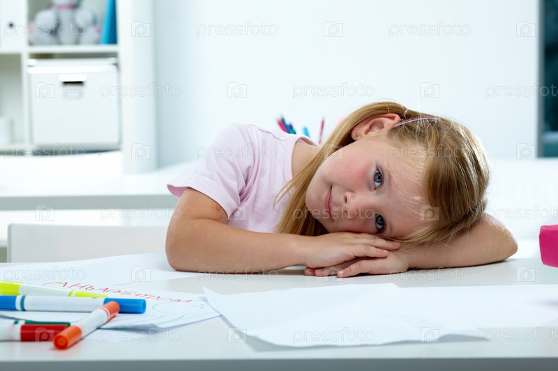 Маленькая девочка сидит за столом