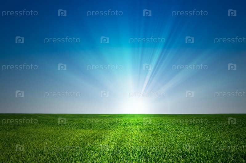 Зеленое поле и синее небо