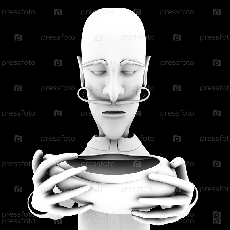 Грустный мужчина протягивает шапку, мультипликация на черном фоне