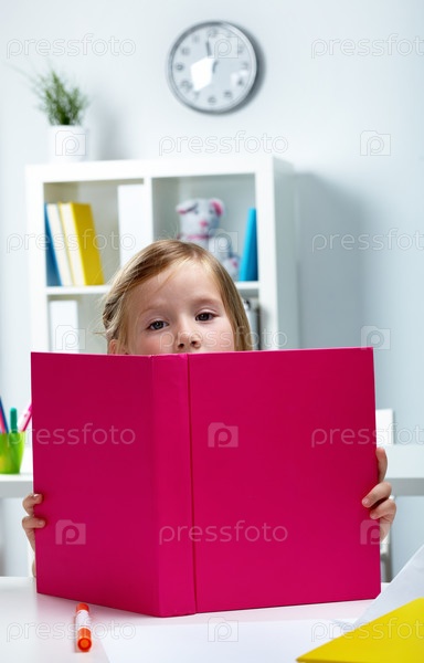 Маленькая девочка читает книгу