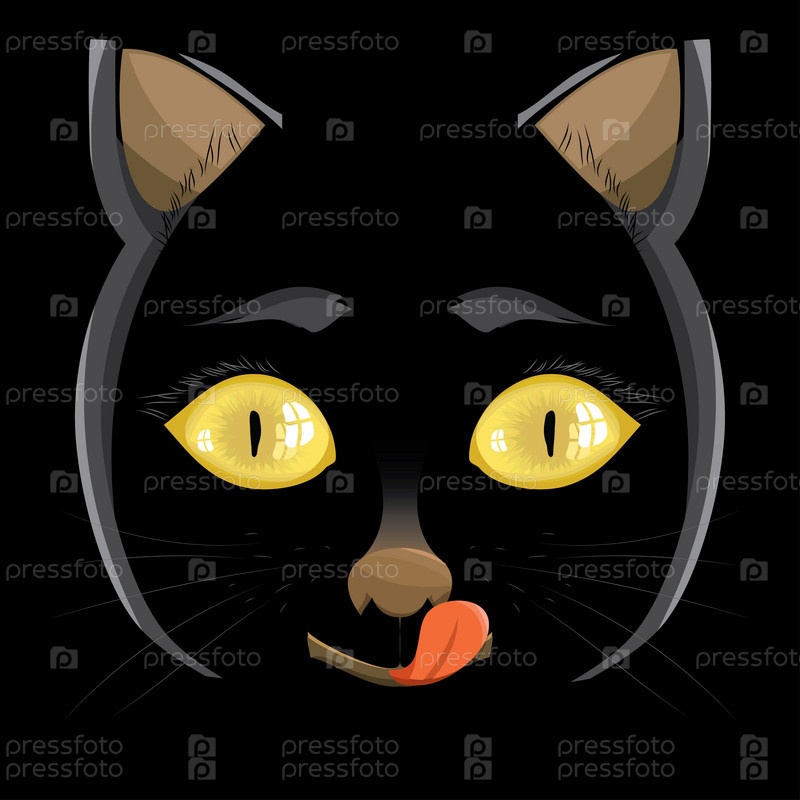 Черный кот с желтыми глазами на черном фоне