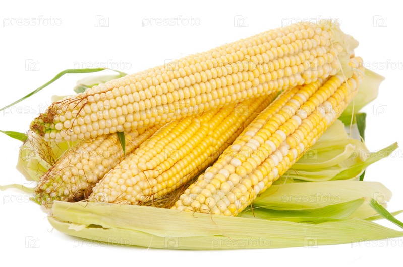 Початки кукурузы на белом фоне