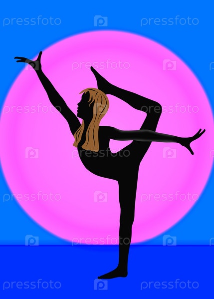 Гимнастка на сине-розовом фоне