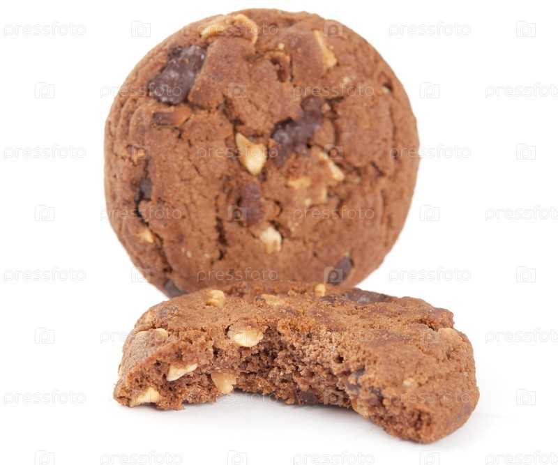 Печенье с орехами и шоколадом на белом фоне