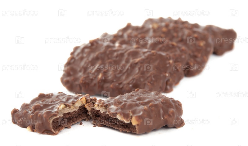 Шоколадное печенье с орехами на белом фоне