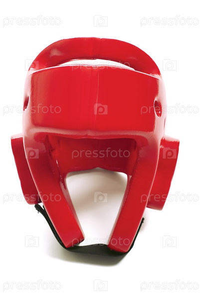 Красный спортивный шлем на белом фоне
