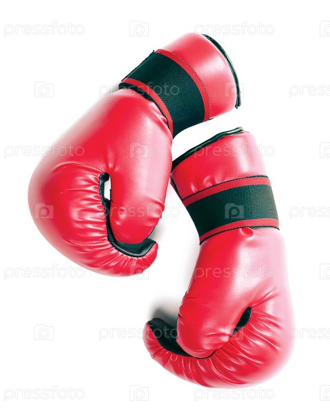 Пара красных перчаток для бокса на белом фоне