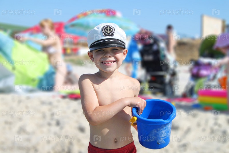 Мальчик играет на берегу моря