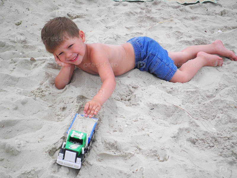 Мальчик играет на пляже