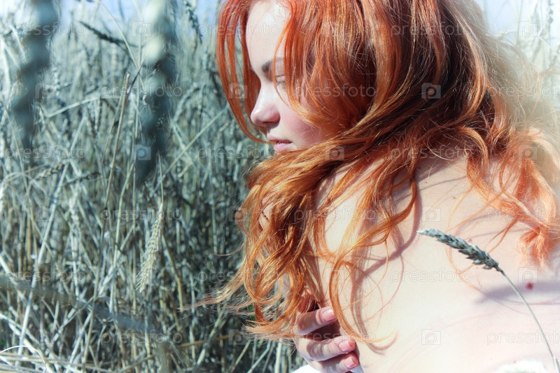 Рыжая девушка в поле