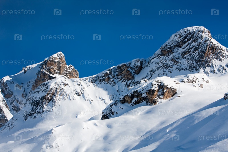 Заснеженные горы на лыжном курорте Европейские Альпы