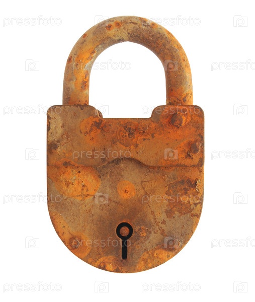 Старый ржавый замок на белом фоне