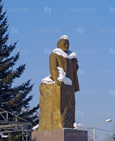 Бронзовый памятник Ленину в зимний день