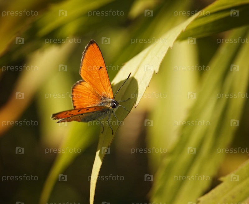 Бабочка на зеленом листе